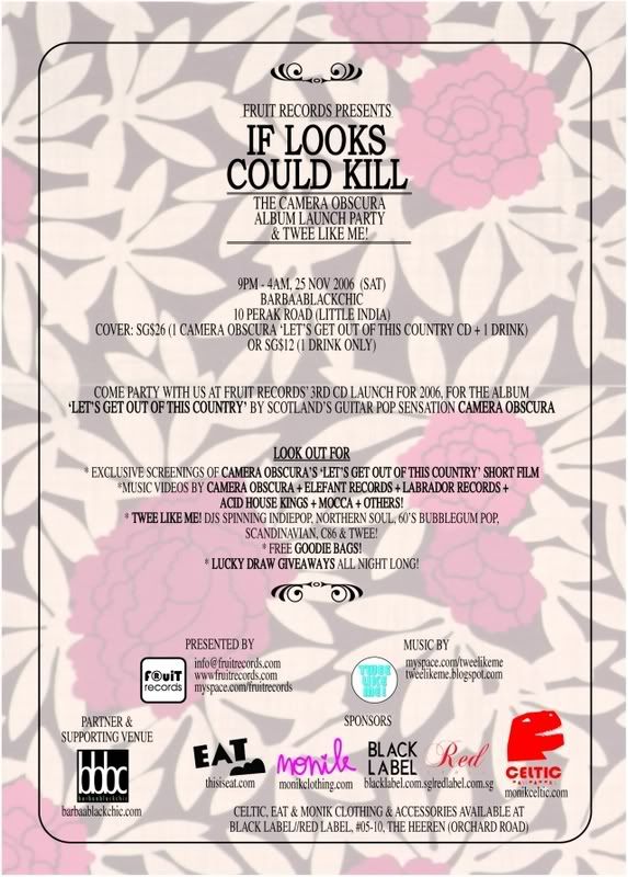 the aforementioned subject header has got to be camera obscura's best track in their latest album. i'm gushing over tracyanne campbell's lush & beautiful lyrics. and her voice, oh my god. the video looks like somewhat recorded in an esplanade-like venue. how cool it would be if the band dropped by next year's Mosaic Festival. just like how Kings Of Convenience gave a surprise visit to this small country of ours. so get your copy from FruitRecords yea.